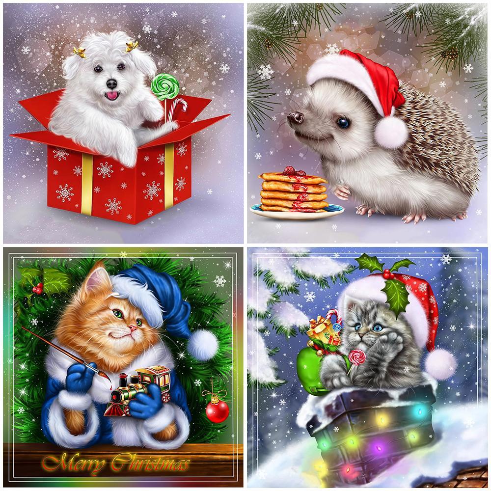 Kaufe Weihnachten Tier Hund Und Katze Diy 5d Diamant Malerei Full Drill Kristall Strass Kreuzstich Stickerei Gemalde Dekoration Geschenke Joom